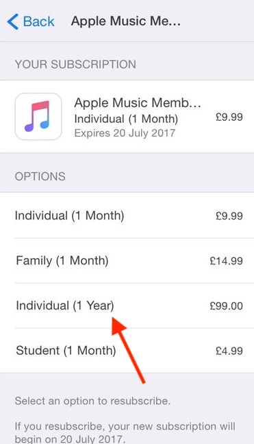 When my 6 month free trial of Apple Music is up, is it possible to continue with an annual subscription? or doesn't Apple do annual subscriptions?