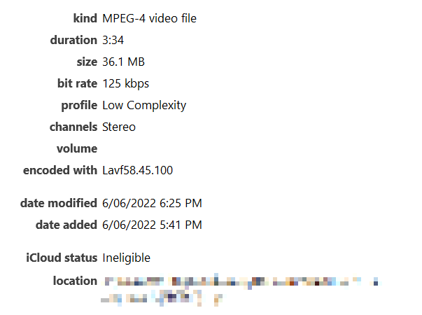 Recently I tried to add a music video to my iCloud library: