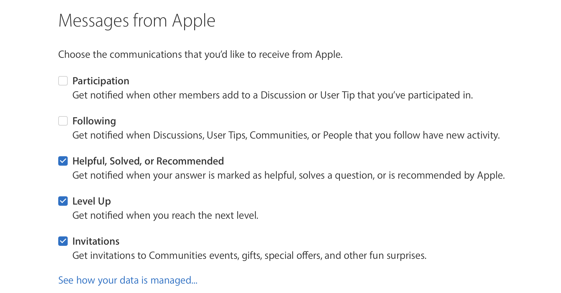 I want unsubscribe apple support community email