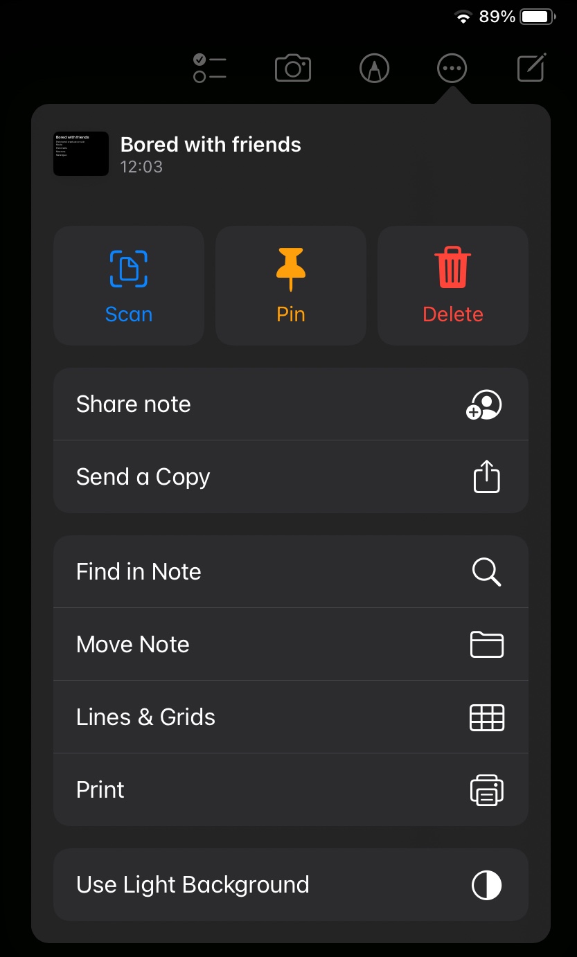 I’m trying to lock a note however, I don’t see the lock icon when I press the 3 dot button on the top right of the note. I have an iPad Pro 2021 updated to iOS 15.5.