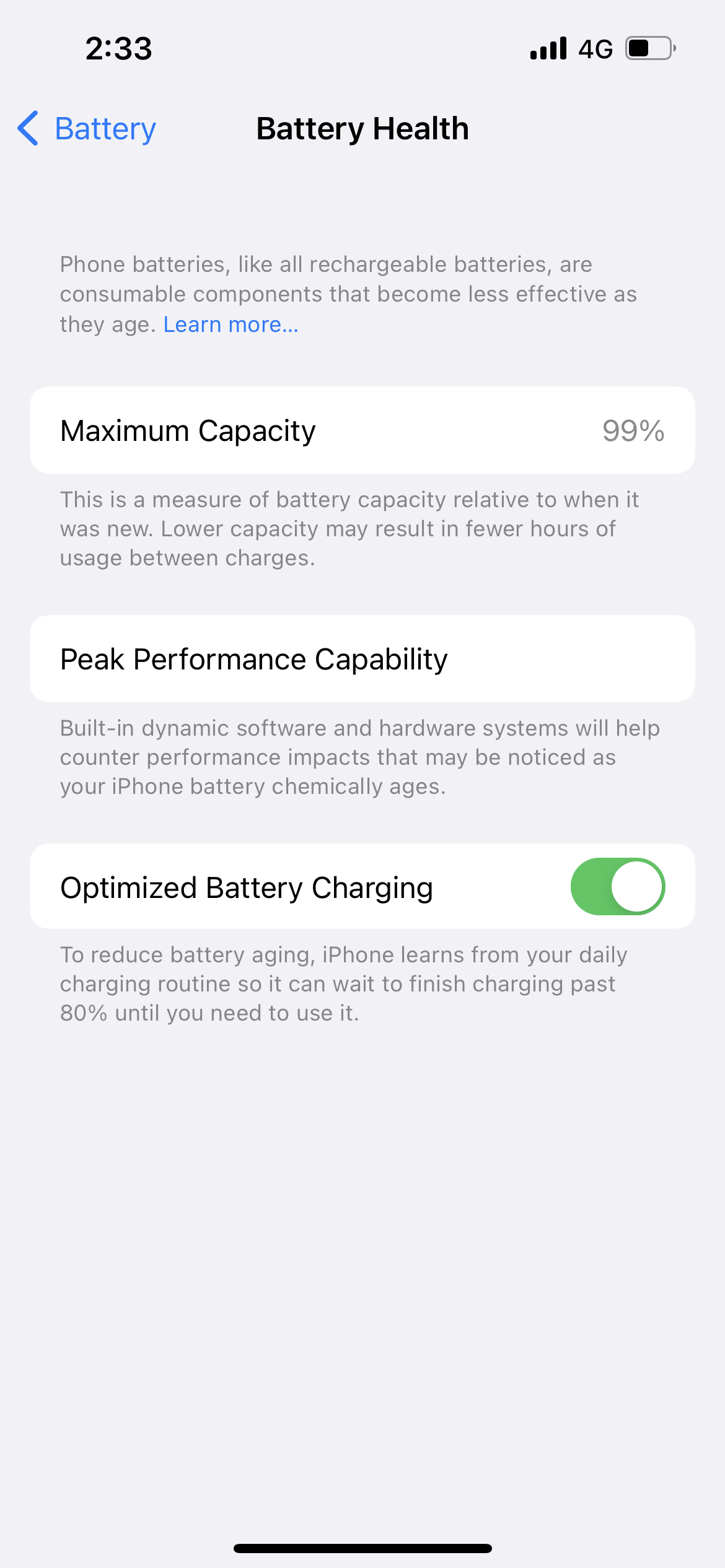 Apple recommends replacing it when it reaches 80%. To check your battery health, go to Settings > Battery > Battery Health.