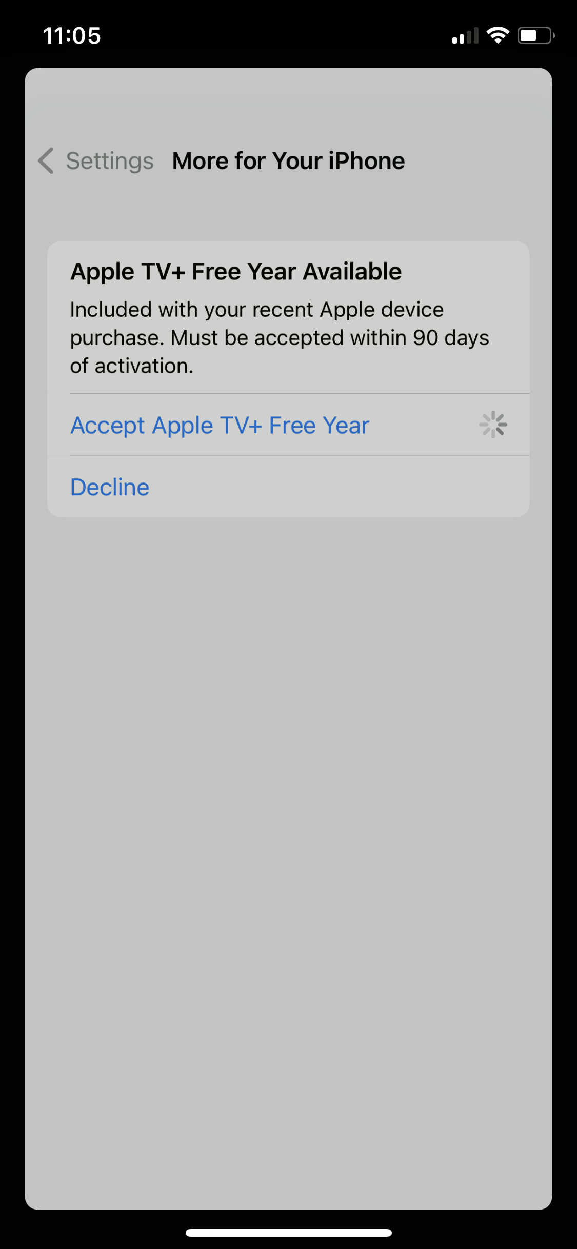 I purchased an iPad Air (love it), but I can’t accept the Apple TV+ Free Year.