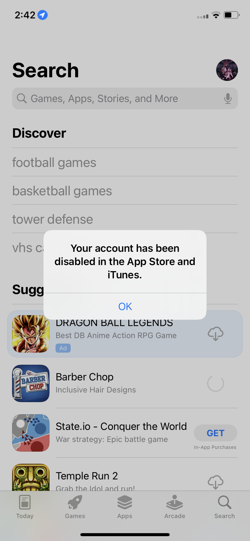 If you see a message that says "Your account has been disabled in the App Store and iTunes," contact Apple Support for help.