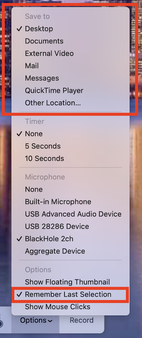open the recording controls with the "command-shift-5" keyboard shortcut, and choose "options".