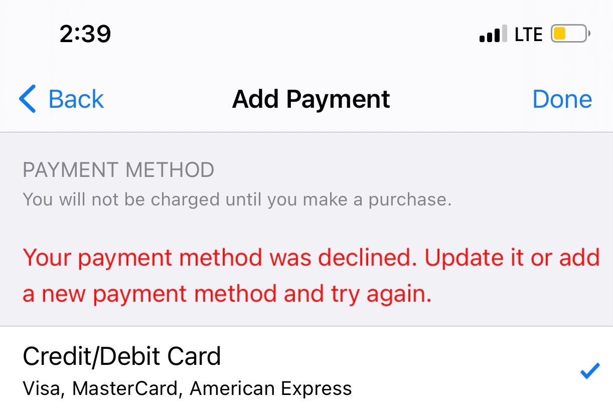Payment method declined