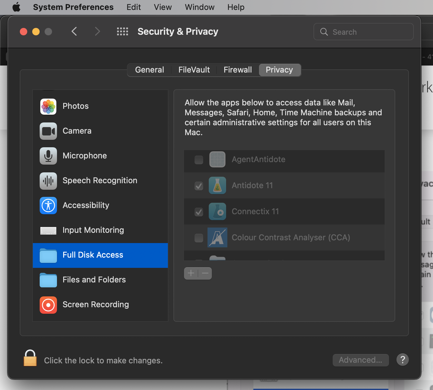 And add the offending Application Full Disc Access.