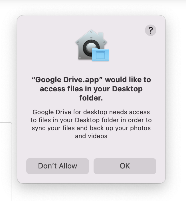 Presumably, this should appear if you are trying to save a file to your Desktop folder (or a subfolder thereof), and if you click OK, then it should never again appear - for the same application and the Desktop.
