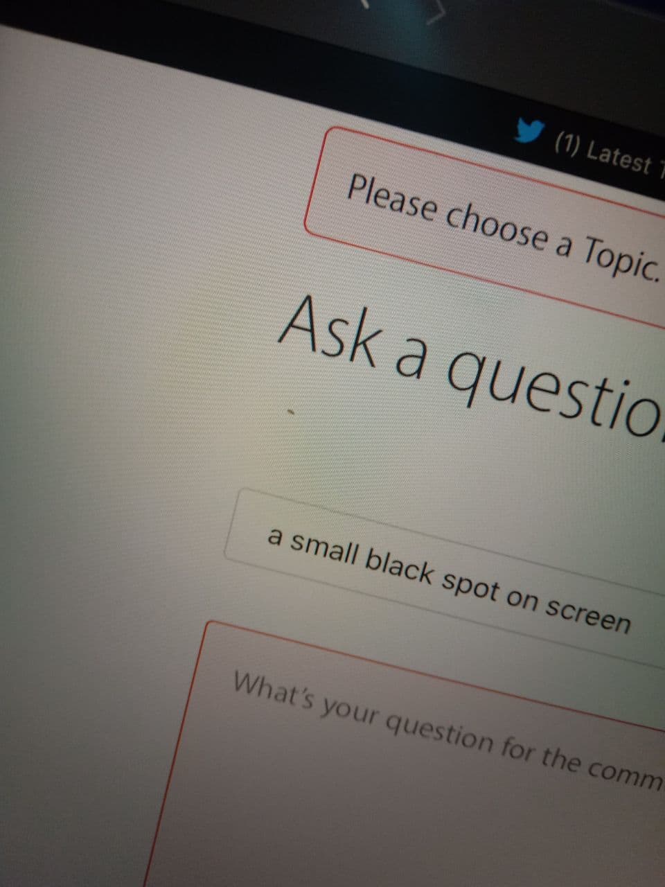 Are you using a Privacy Filter? If so, that may be debris on it. Use a microfiber close to clean a Privacy Filter.