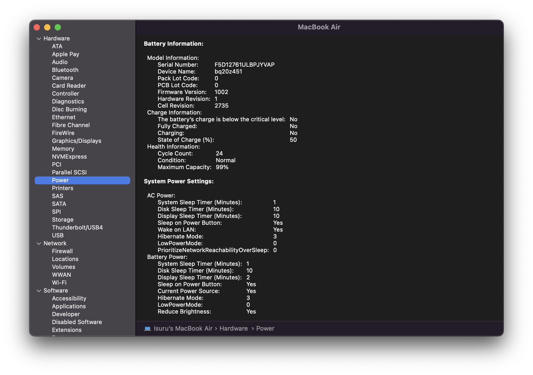 I bought my MacBook Air last November.Cycle count is 24 right now.and also maximum capacity has been 99%.what is the reason for it?.I think my battery is drain fast.please give me a reason.