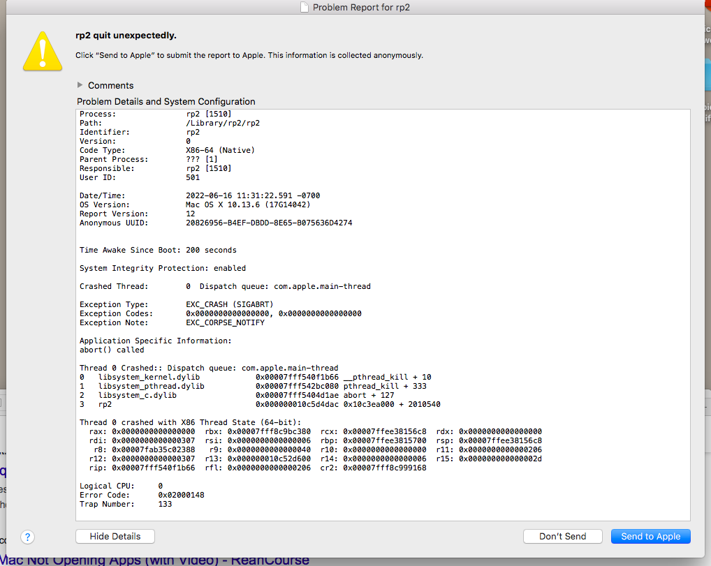 I restarted my MacBook Air 2017 a few hours ago because it was running slowly, and ever since, a popup (picture below) has been showing up every few minutes or so. If I select "Ignore," it will show up on my screen again. If I select "Report" then it generates a report (it's fairly long but the first part of it is pictured below as well), and regardless of whether I choose to send or not send the report to Apple, the popup will come back a few minutes later. If I select "Reopen," then nothing happens.