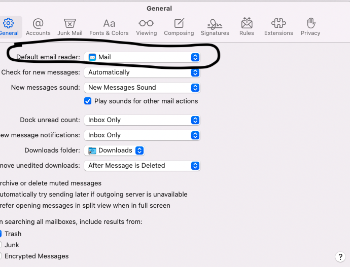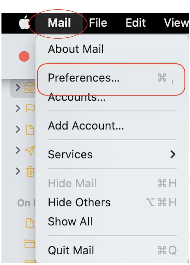 I have searched this online but every article I've seen ignores the fact that when I open the Apple Mail app, a window pops up asking me to "Choose a mail account provider ... " and the "Preferences" menu option is grayed out. (I suppose I can go ahead and set up something temporarily, but this seems like it should be unnecessary.)