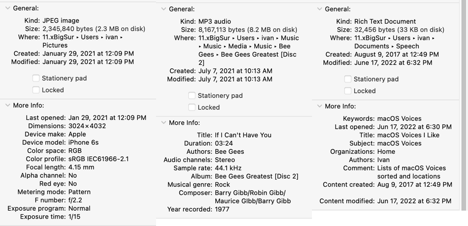 To view metadata for a file, select the file, then choose File > Get Info.