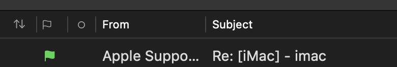 No grey flag in the heading… in Monterey IOS you can list by flag, you can flag a message but they don’t appear next to the messages Inbox. Never…