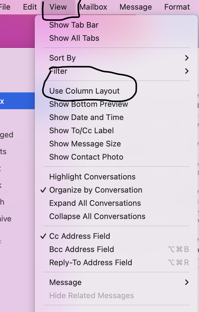 Mali >> Top Tool Bar >> View and drop down menu " Use Column Layout "