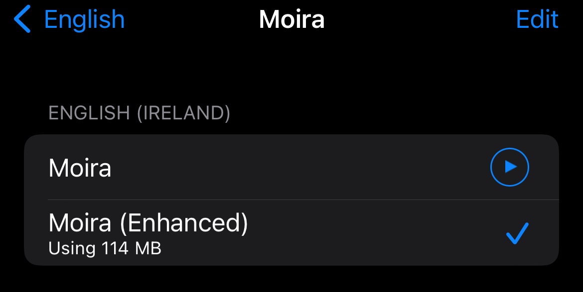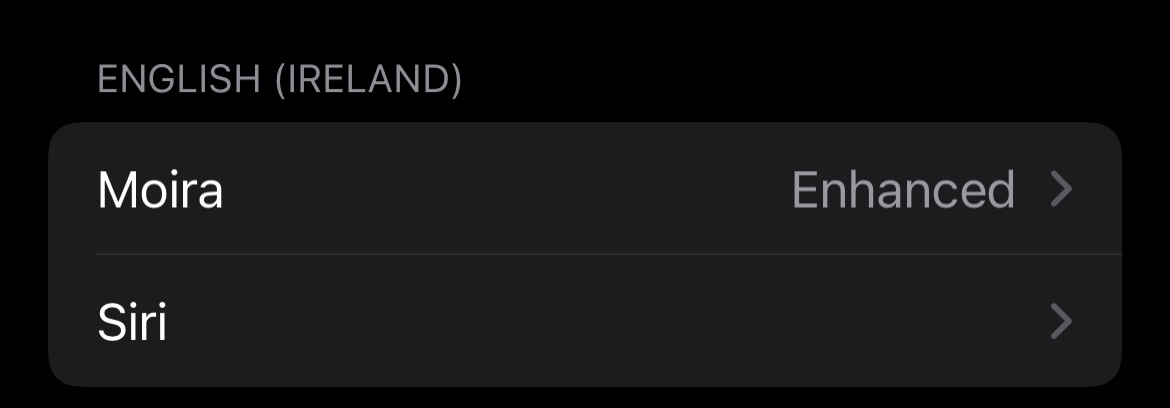 I have iPhone 12 w. iOS 15.5 (current), and I have cycled my phone many times. I have checked Siri to ensure my Irish/Female option is enabled.
