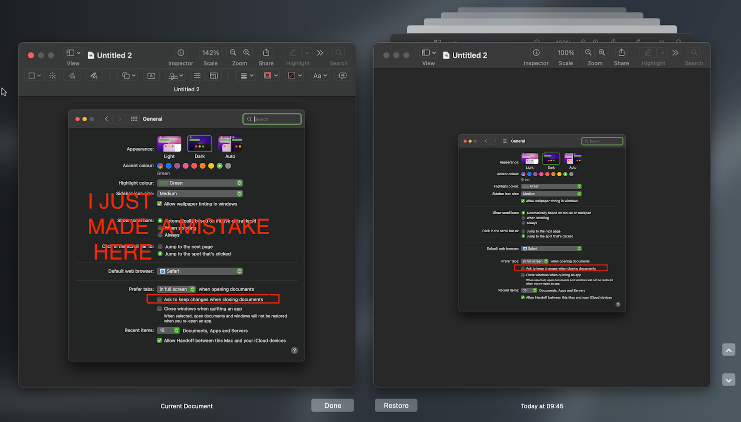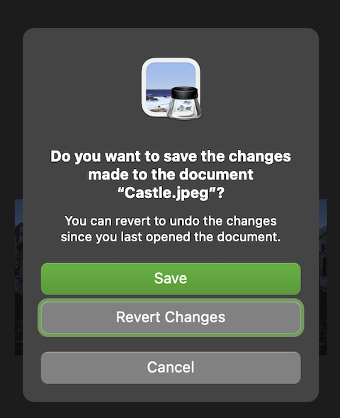 Without even hitting SAVE, the image in Finder was automatically updated to that size, so if I then close Preview, there's no way for me to undo those changes.