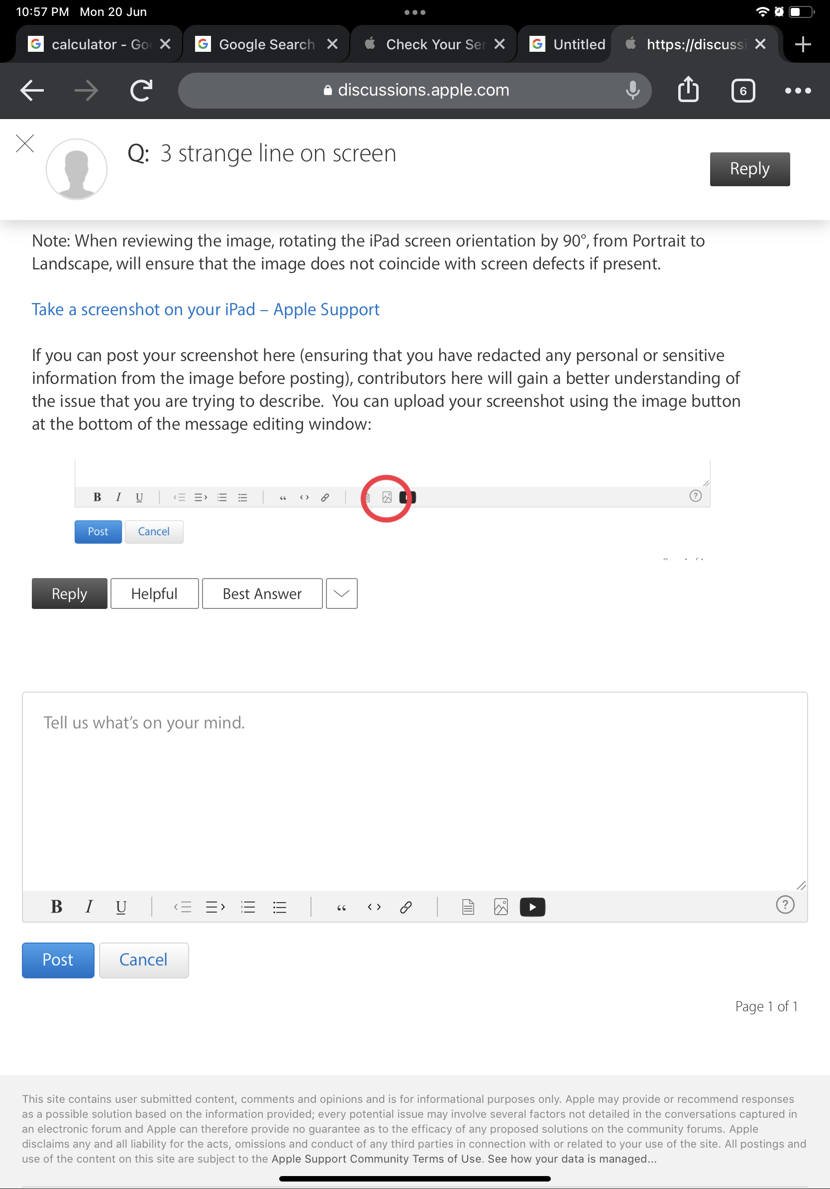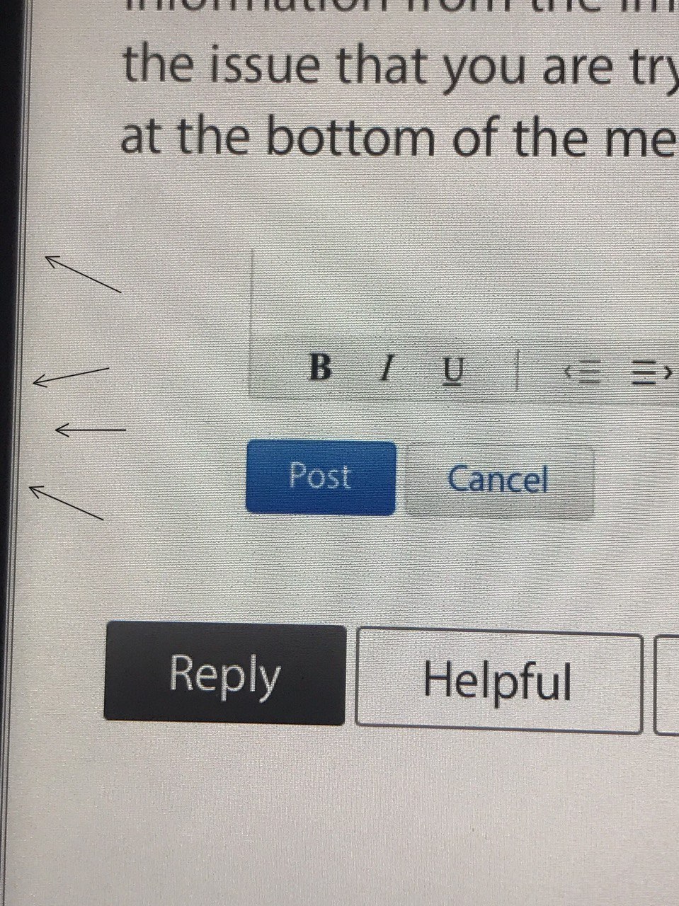 If you can post your screenshot here (ensuring that you have redacted any personal or sensitive information from the image before posting), contributors here will gain a better understanding of the issue that you are trying to describe. You can upload your screenshot using the image button at the bottom of the message editing window: