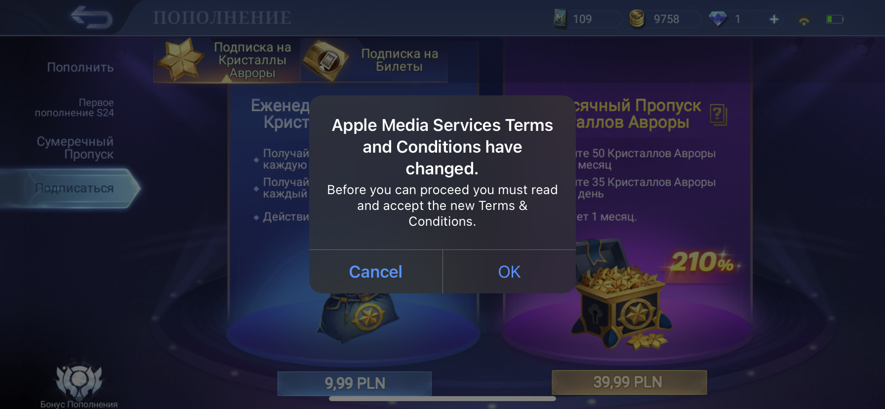 Я поменяла регион и карту с украинской на польскую. Пытаюсь оплатить покупку в игре и мне вылазит чтоб я подтвердила пользовательское соглашение. Я его подтверждаю, оно опять вылазит, опять подтверждаю и так до бесконечности. что мне делать?