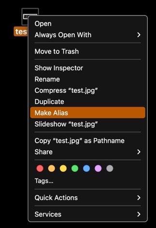 shift-command-A now brings up a list of applications rather than making an alias; nothing happens with right-click