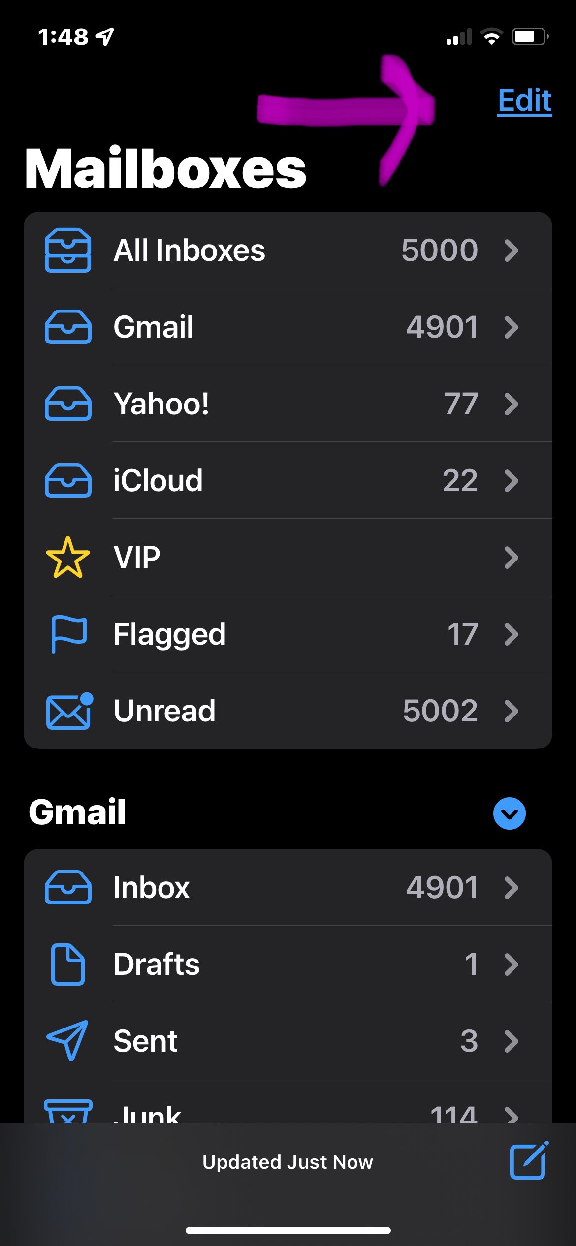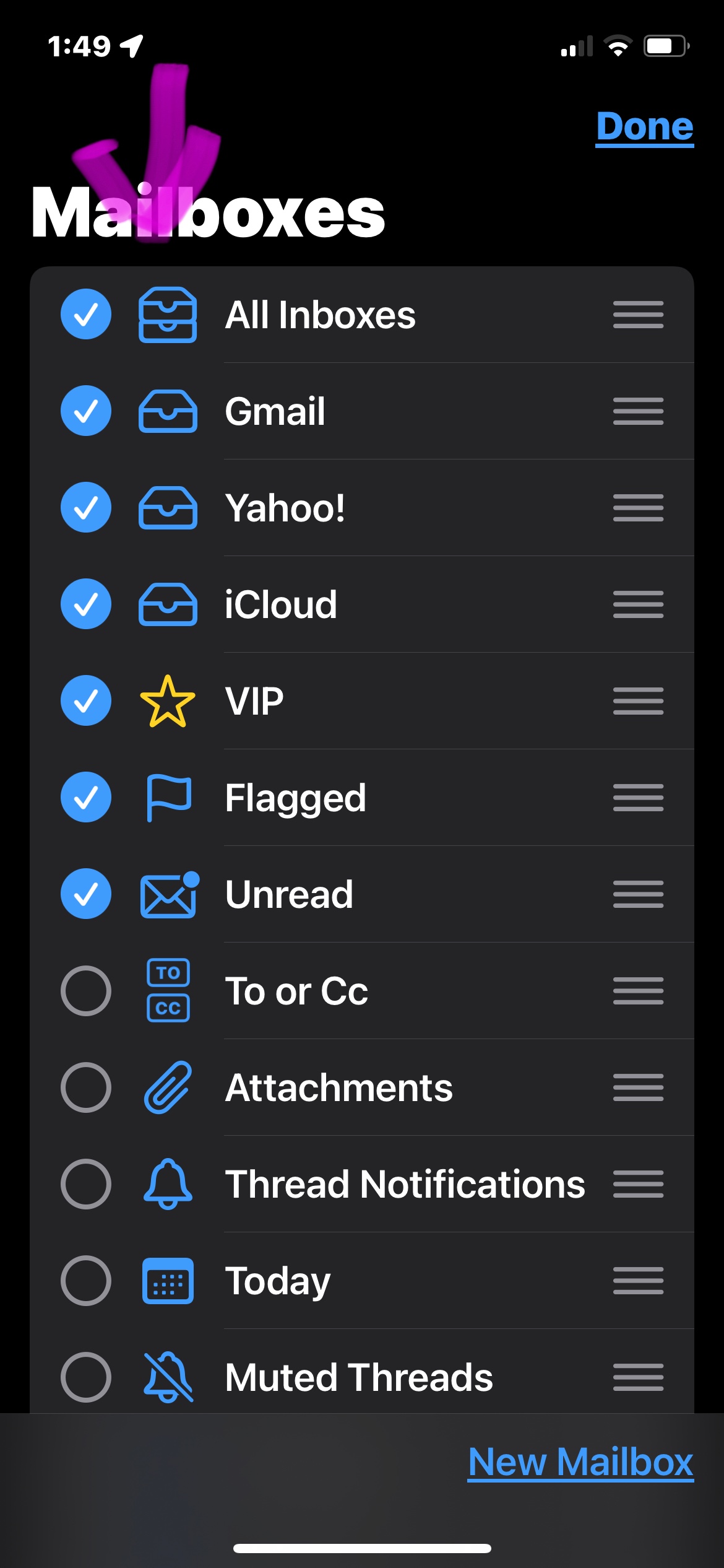 Hi! Try this…At the top of the screen that says mailboxes at top, click on the word “edit” and make sure there is a check mark by the boxes you want to appear. See pics. I hope this helps!