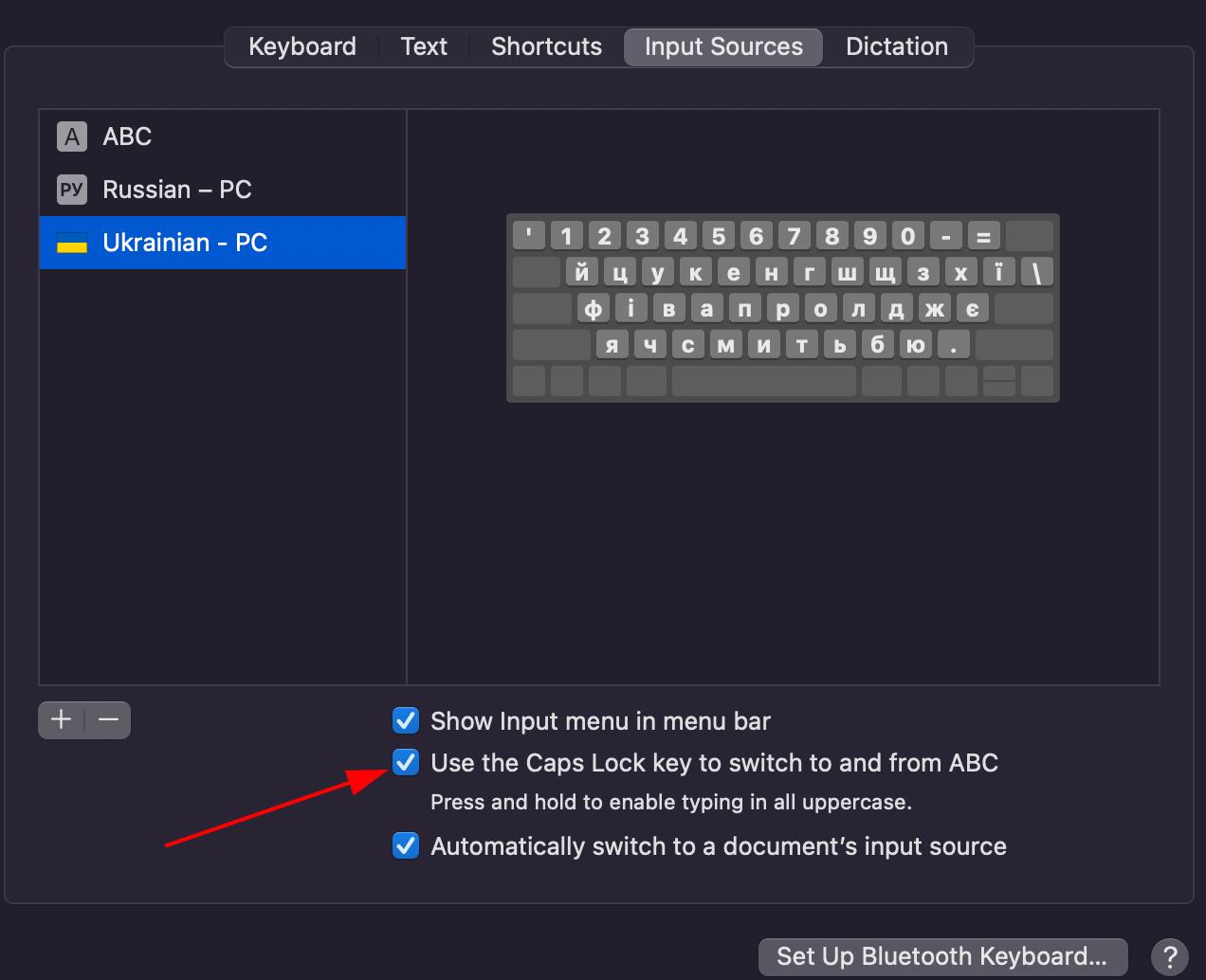 Hi. Since Apple changed default Ukrainian keyboard layout and brings a lot of head ashes to users we need to use a .bundle package (Wrong UA keyboard layout in Monterey - Apple Community). But this solution not allow to use a default option to switch between layouts with a CapsLock key. Is it possible to return old Ukraian - PC layout or to allow to use a CapsLock to switch to it and back?