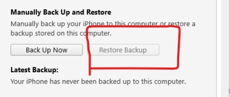 Hello! I have made a backup of my iPhone because i change it, and now when i want to restore backup on my new iPhone it wont let me, “restore backup” button is greyed out, why is this happen? iTunes is instaled in C drive, backup is also in C drive, backup folder is visible. I have the latest version of iOS on my device, and last version of iTunes.