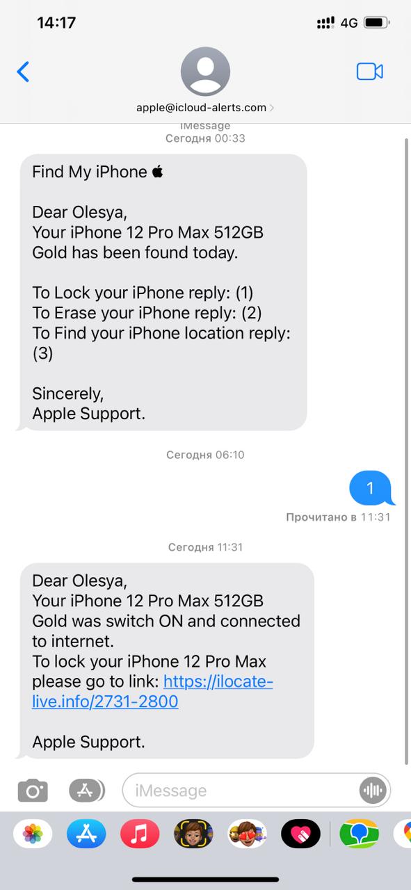 Scam message. Apple does not get involved with lost or stolen phones. Do not reply to them.
