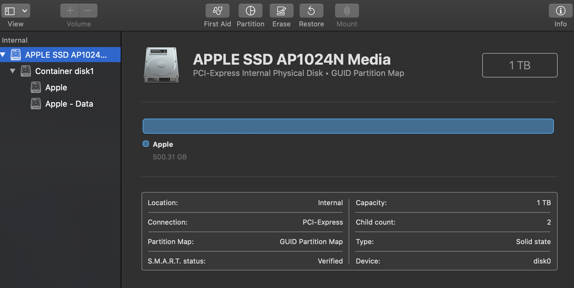 Missing 500gb of space after deleting Bootcamp