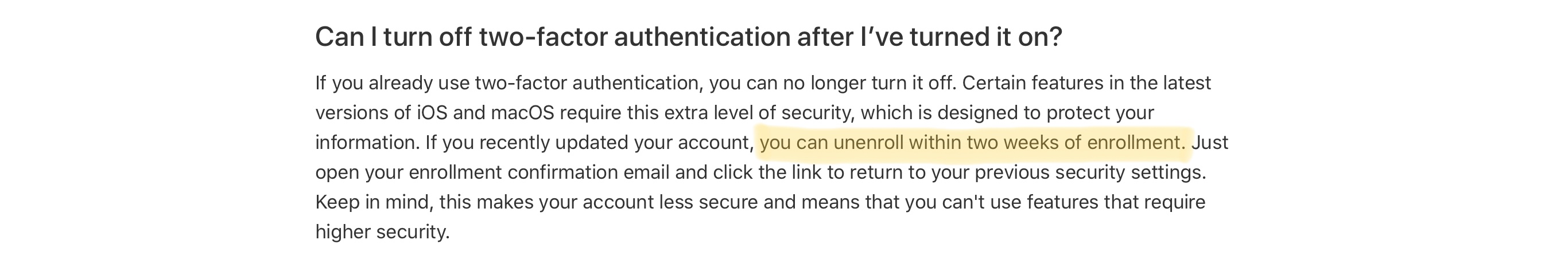 And it has nothing to do with anyone’s personal device or devices. Not one thing. It is entirely about securing an AppleID when used to login and access Apple online services. So when you talk about disabling it on your iPhone, you clearly don’t understand what it even is. It has nothing to do with your iPhone (or iPad, or Mac or iPod touch). It has to do with your AppleID and that AppleID being used to sign in to Apple online services, on any device you own.