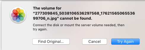 The thing is, most people do check "Copy Items to Library." If it isn't checked, then Photos may not know where your pictures are. If it is not checked, then when you add pictures to Photos, it just tries to remember where each picture came from. If anything moves, Photos will lose track of it. If the "Copy Items to Library" is checked, Photos makes a copy to store inside its Library package so that the photos and the data base that goes with them are always together. Of course, this means there are two copies of the pictures. But then you can delete the folder they came from (or move it to another disk) and Photos will work just find. This disconnect from a folder containing the originals is what usually causes the "cannot be found" problem.