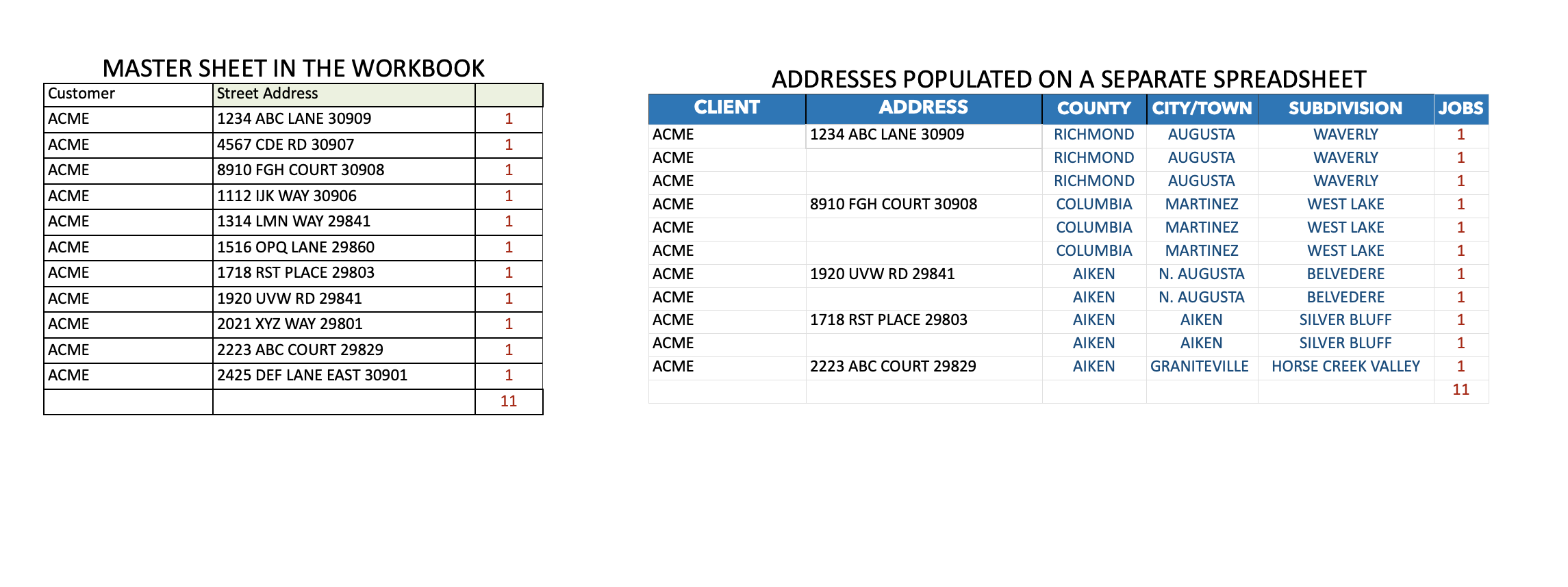 I have nearly 400 clients. I want to populate each address into a spreadsheet within that workbook.