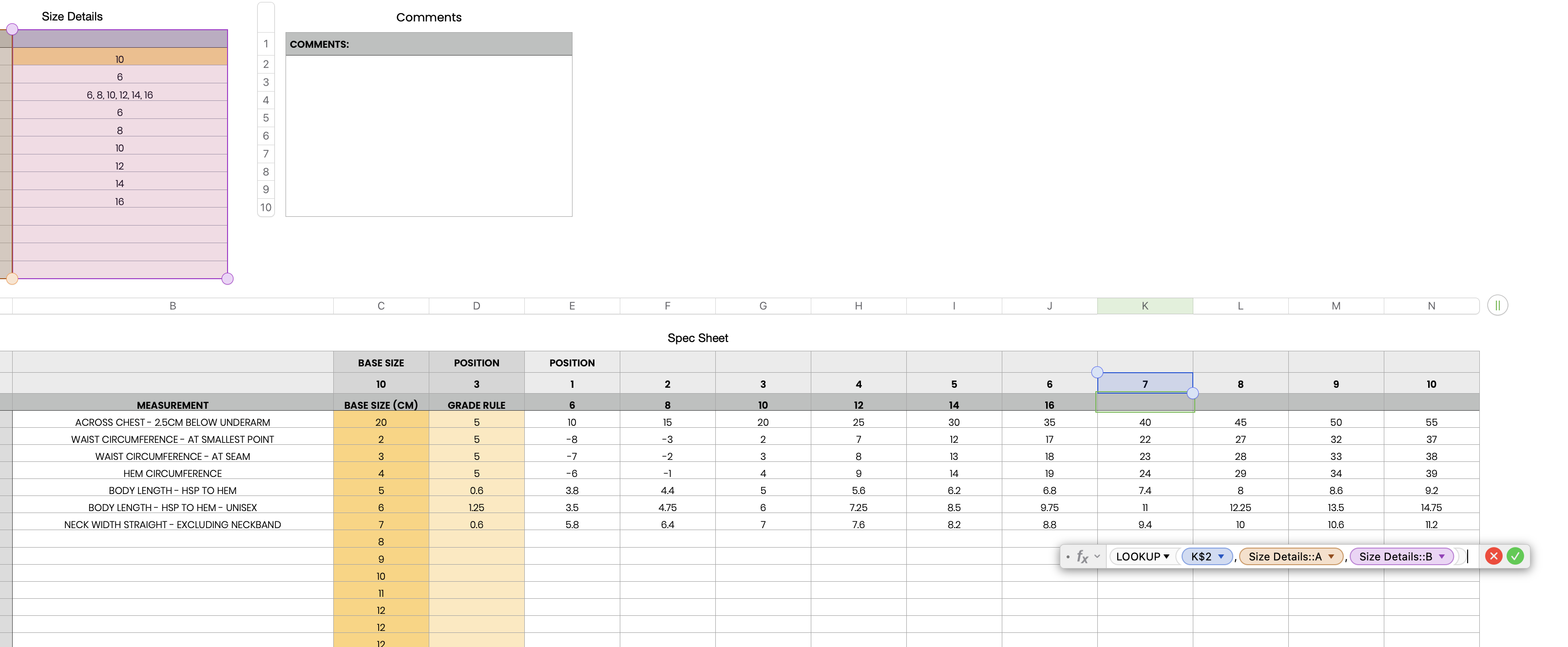 Where I have the cells labelled 6,8,10,12 etc under 1,2,3,4....if there is a blank cell I don't want any measurements from A-z. For example the cells 40, 45 50, 55 would be blank. Is there a formula to do this?