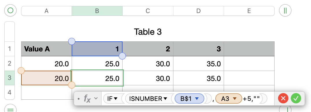 For these examples the cells B1 to E1 are formate as numbers!