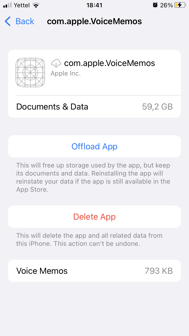 Hello, i have a problem with deleting my Voice memos . When i delete the app, it just comes back as this and it’s using a lot of space for the app that I don’t even have anymore. Before i deleted the app, i have deleted everything that i had on my app and i have deleted it from my deleted voice memos. Then I uninstalled the app and i have had it like on the picture here(it always comes back like this and and i have an option to delete it but then it appears again)⬇️I have a big problem with it and i need help with that as soon as possible. Thank you.