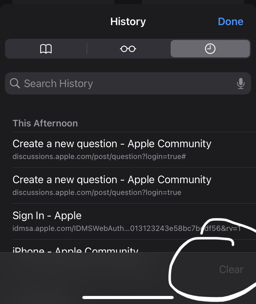how do I clear my history if the button to clear my history isn’t blue it’s gray and it’s not letting me clear my history?