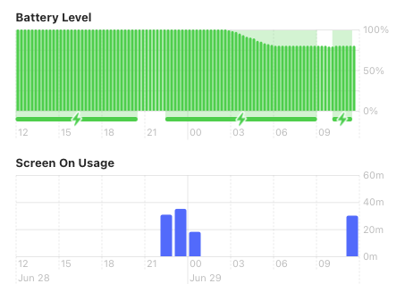 If you look at the battery level from 00 to 06 am, it was sleeping without any Screen On Usage, it should't use battery at all, also my macbook was plugged-in, even if it uses any power it should not use the battery.