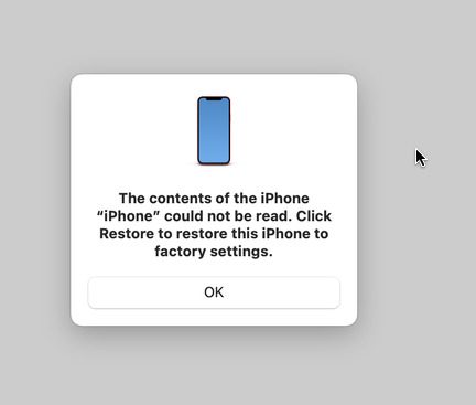 iPhone 12: The contents of the iPhone could not be read. Click restore to restore this iPhone to factory settings.
