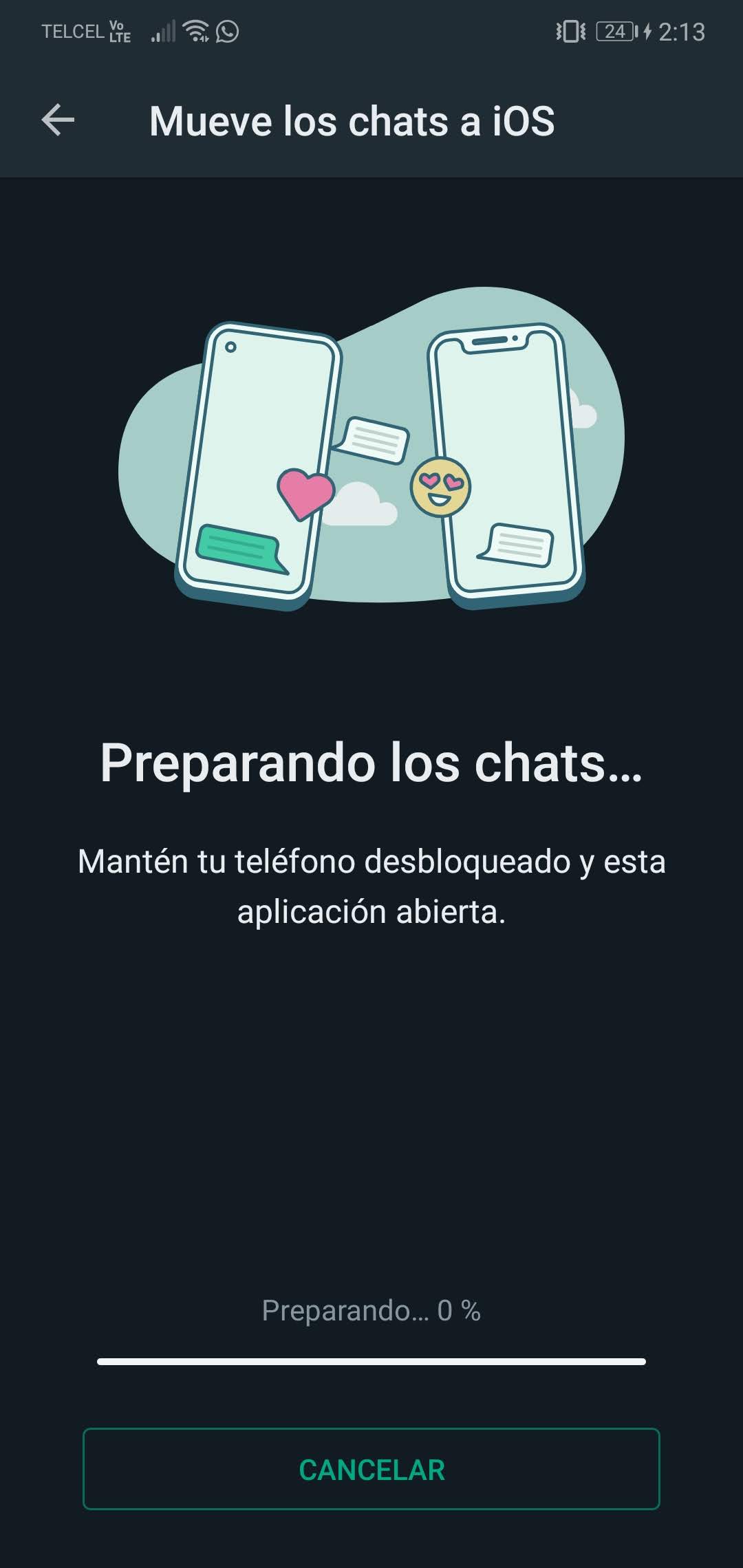 I've seen posts about not having the WhatsApp option in Move to IOS but my problem is further in the process, when I select the WhatsApp option it gets stuck in 0%, what can I do to solve this issue?