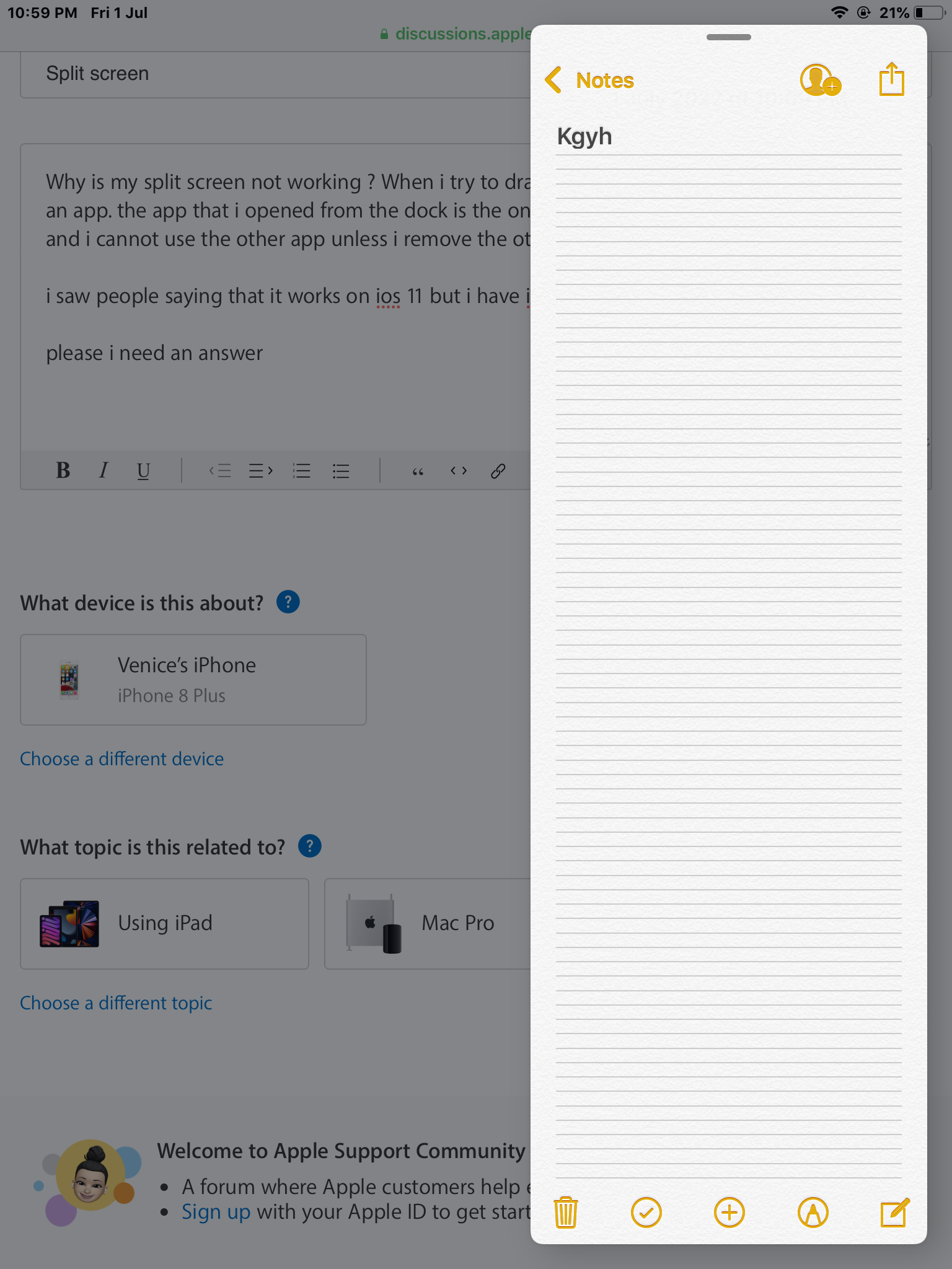 Why is my split screen not working ? When i try to drag an app from the dock while opening an app. the app that i opened from the dock is the only one that works.