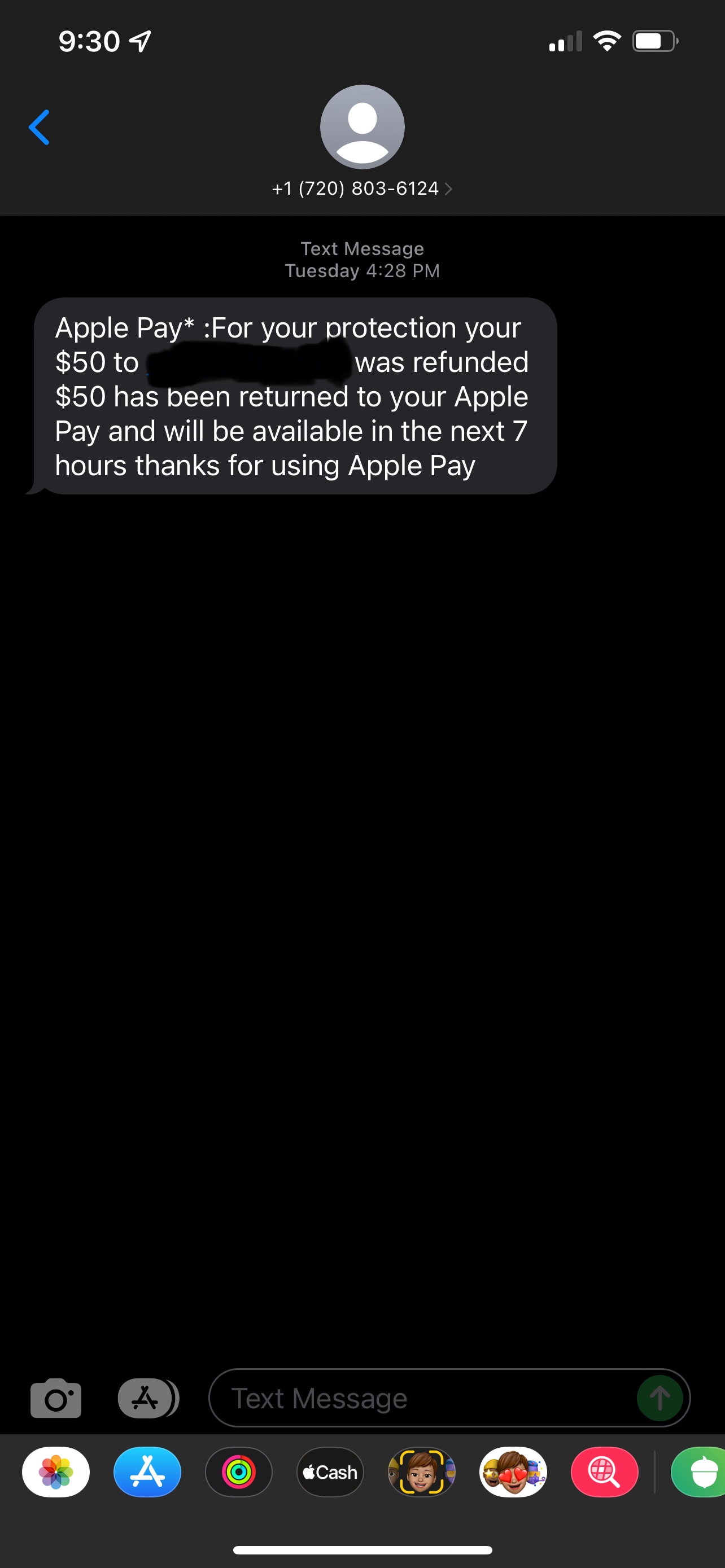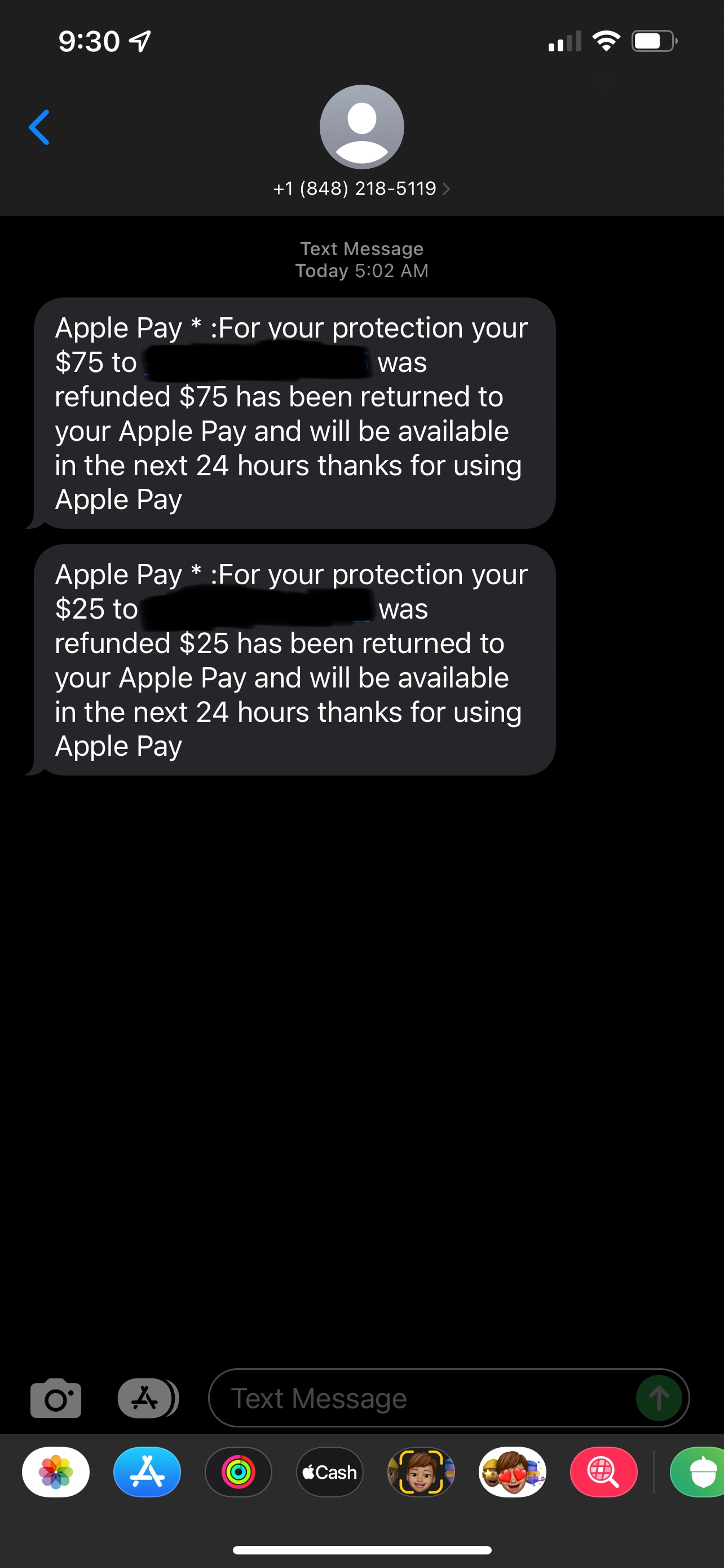 When I send money through Apple Pay I end up getting a text either right away or a couple hours later stating that Apple is refunding the money I sent and it would be available in 24 hr. What does this mean?