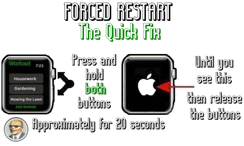 Press the sude button and crown at the same time until the apple logo appears, then release to restart your watch