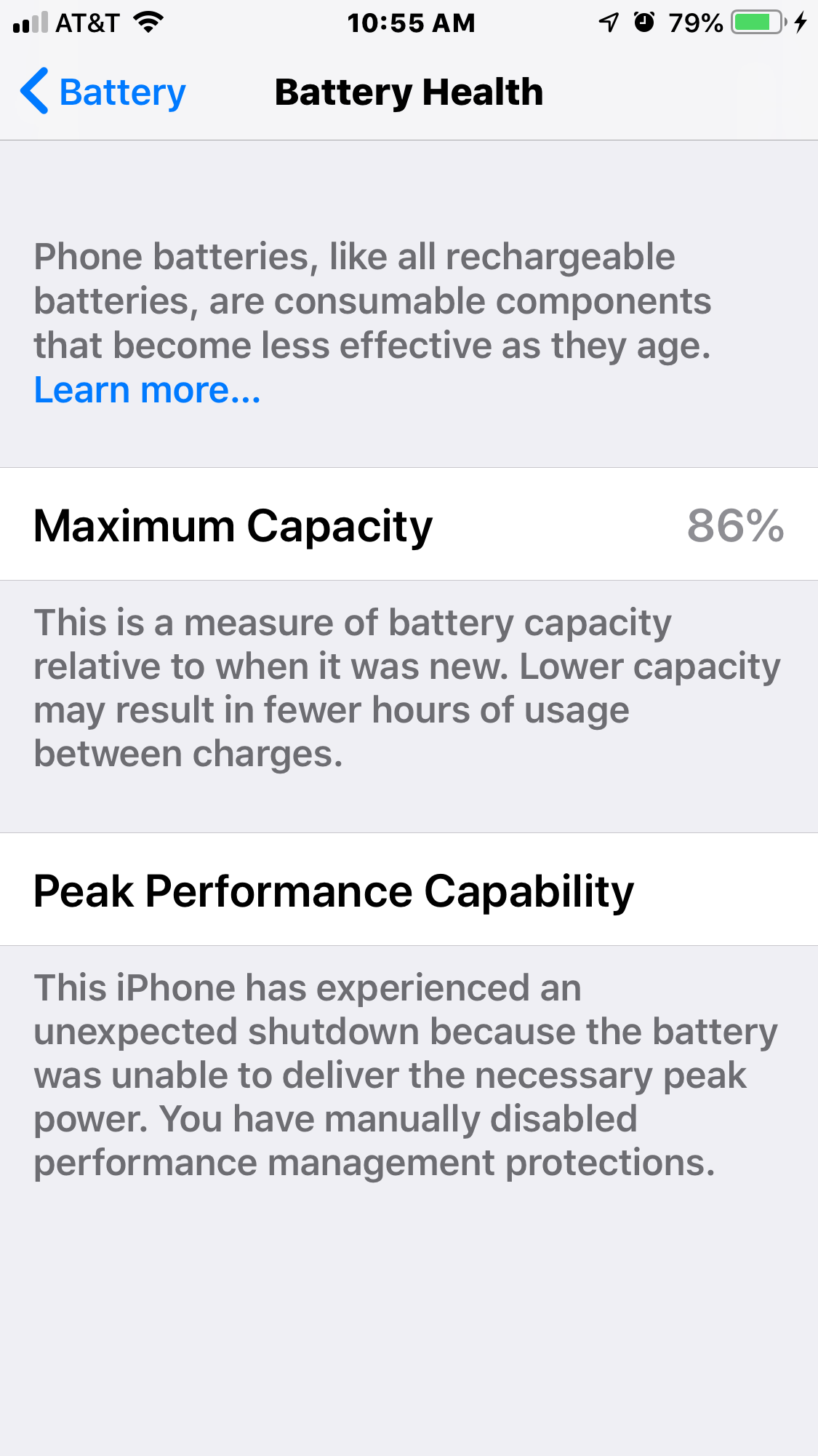 BSummers74 wrote: "It is the original battery. After an unexpected shutdown sometime in the past, I guess I manually disabled Battery Performance Management..."