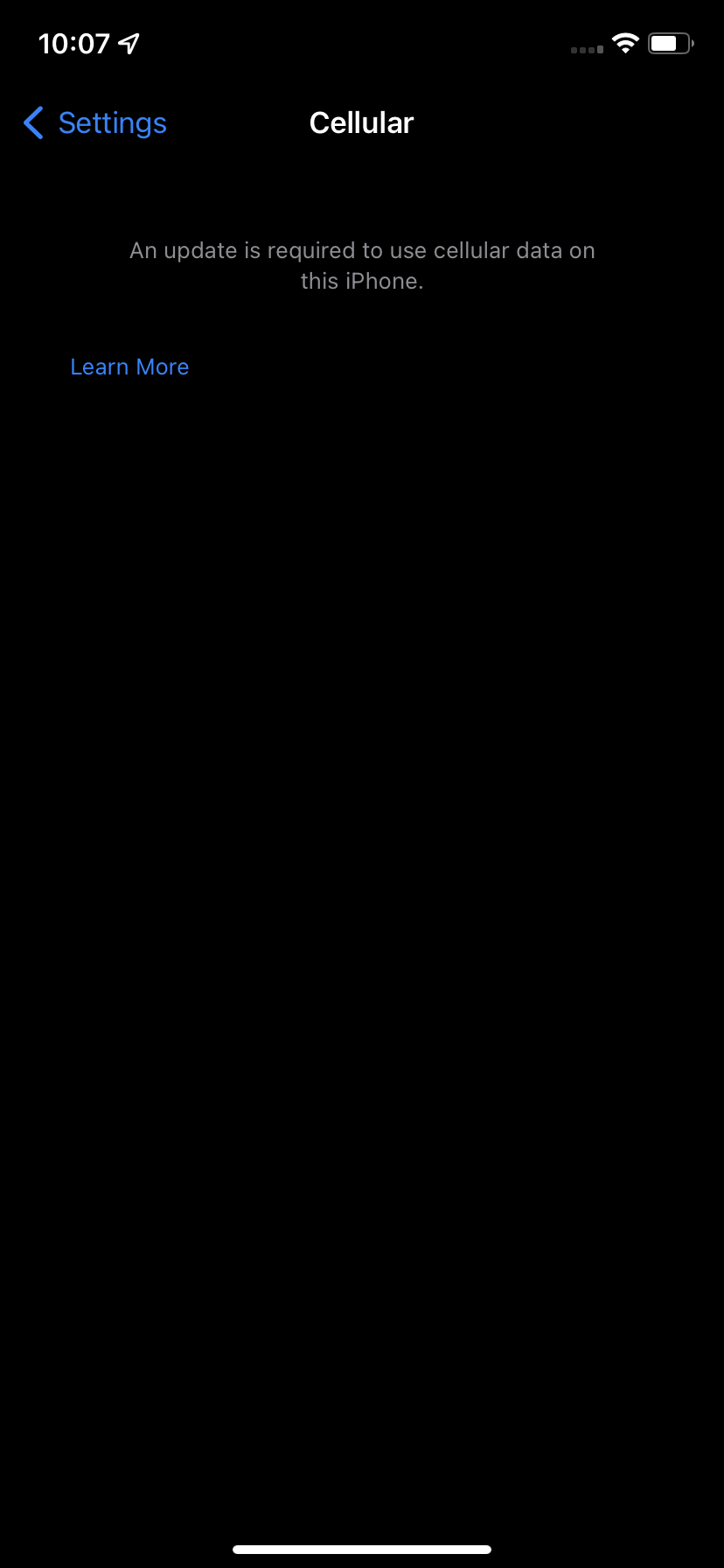 Hello the phone doesn’t detect the sim cards, and when i go to settings cellular, it shows that an update is required to use cellular data on this iphone while the iphone update is up to date with version 15.5
