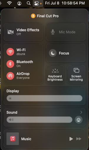 Monterey 12.4. In the upper right corner of my screen, there's a yellow dot next to the control panel (or whatever it's called) in the menu bar. See my screenshot below. What does that yellow dot mean?