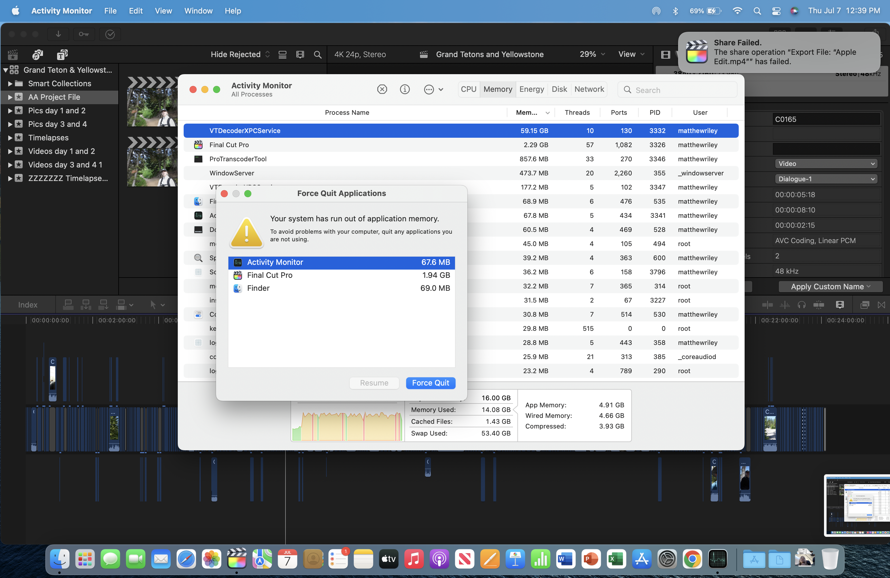 VTDecoderXPCservice taking up too much space on Final Cut Pro