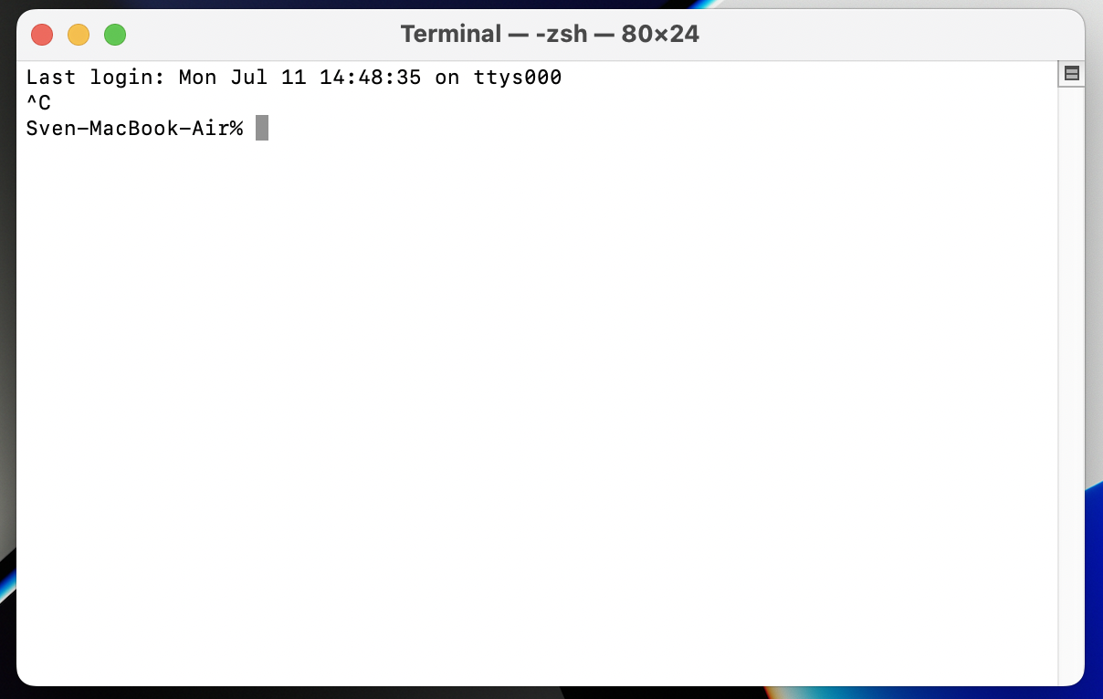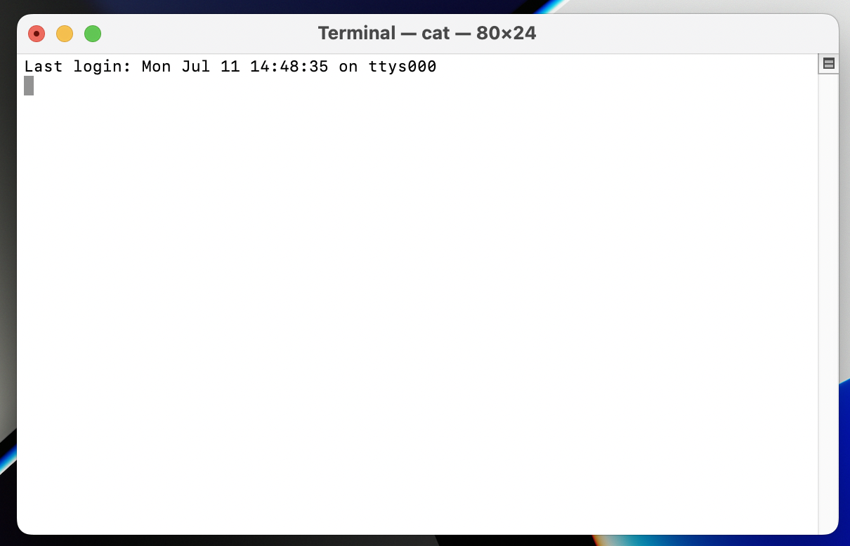 After this when I opened my terminal it's default state is "cat". When I press CONTROL + C I am no longer in cat "editing" but where I had to be. (pictures shows before and after pressing CONTROL + C)