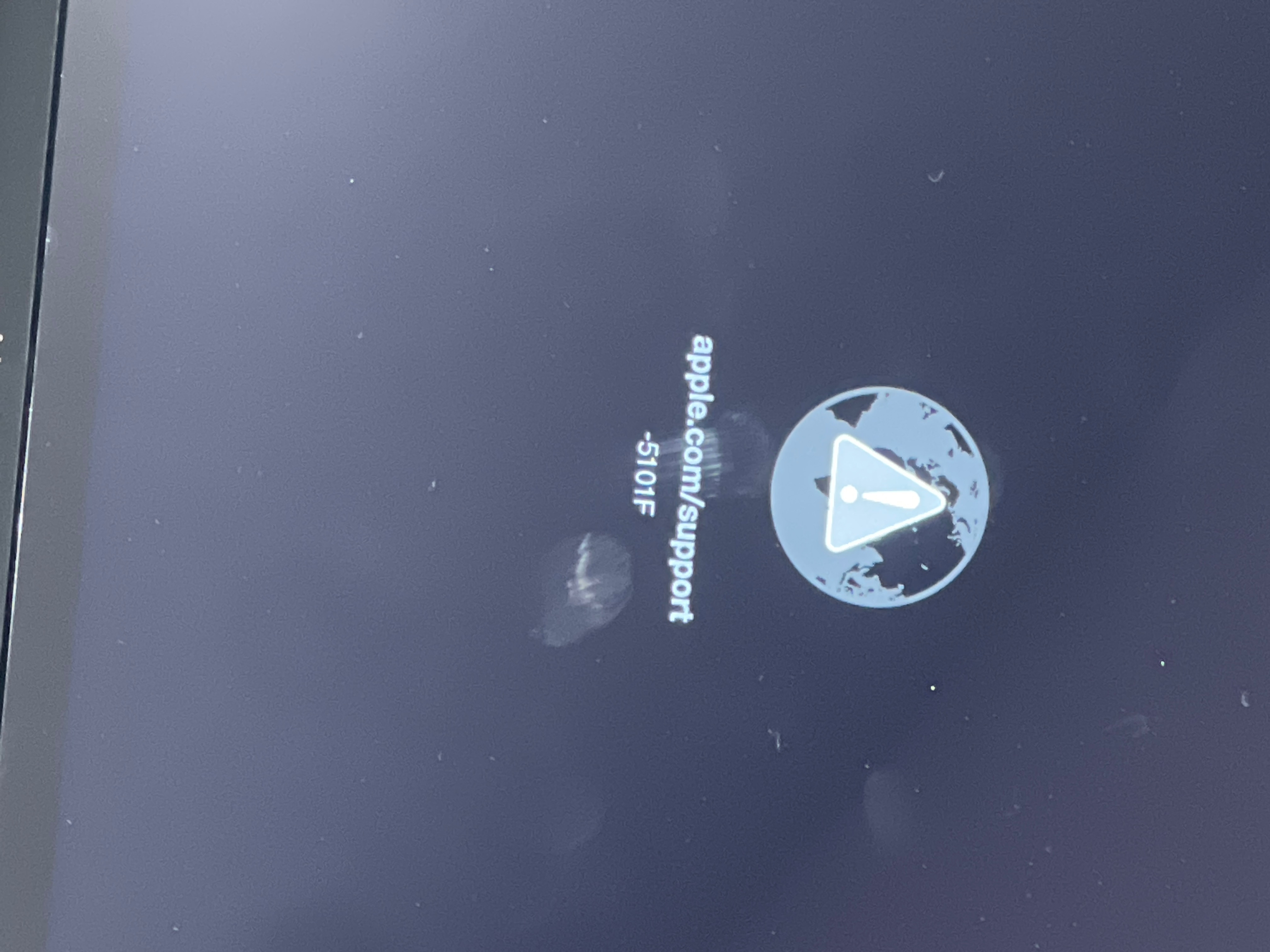A globe with an exclamation point means that your Mac tried to start up from macOS Recovery over the internet, but couldn't. Learn what to do if your Mac can't start up from macOS Recovery.