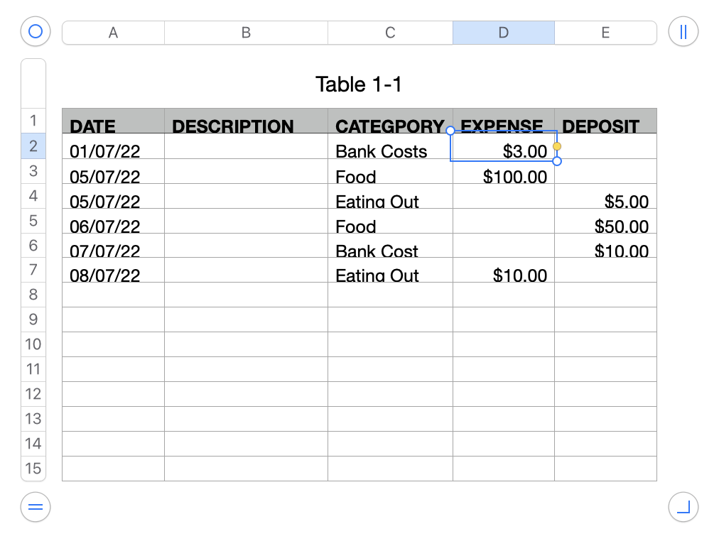 the text you entered and the sig of the number in your example conflict, so, I made an attempt to make the example consistent... that is "Eating out" is always an expense... unless you are meaning it as an indication of a business expense that was reimbursed.