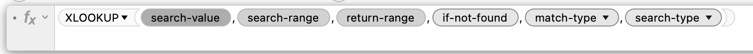 =XLOOKUP(A2,Transactions::D,Transactions::F,"NF",0,-1)