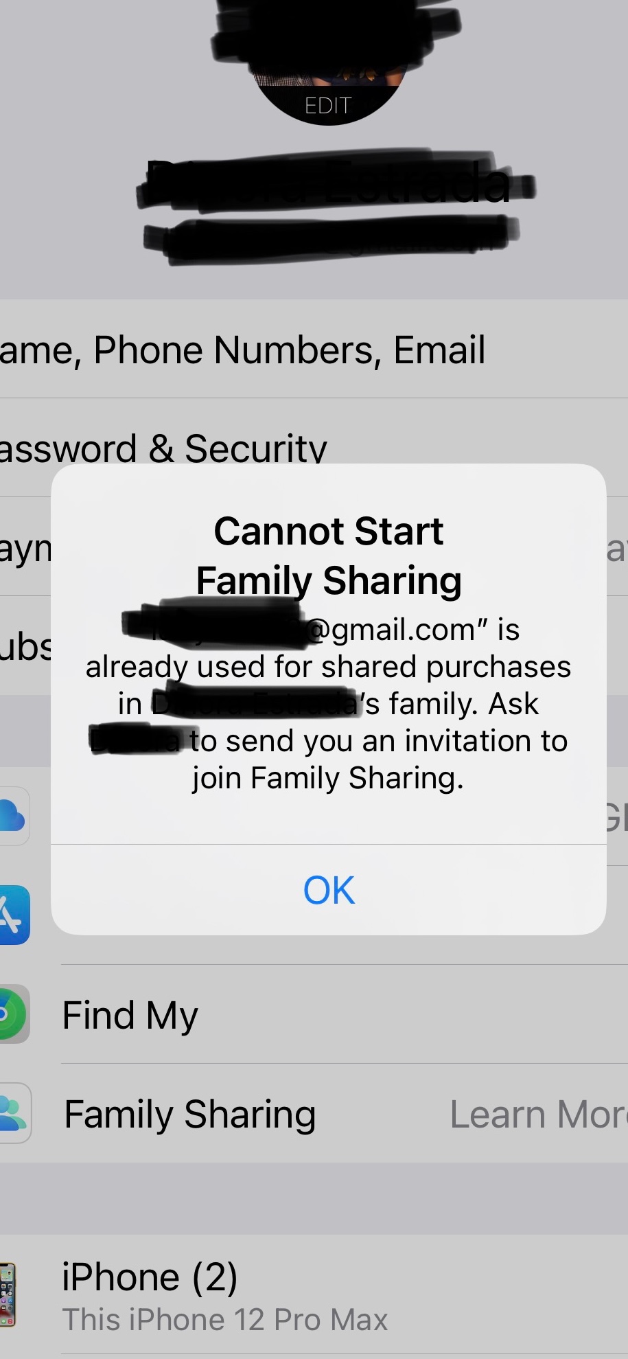 How to send link for family sharing? I’m using my email but it’s asking me to send a link to myself.